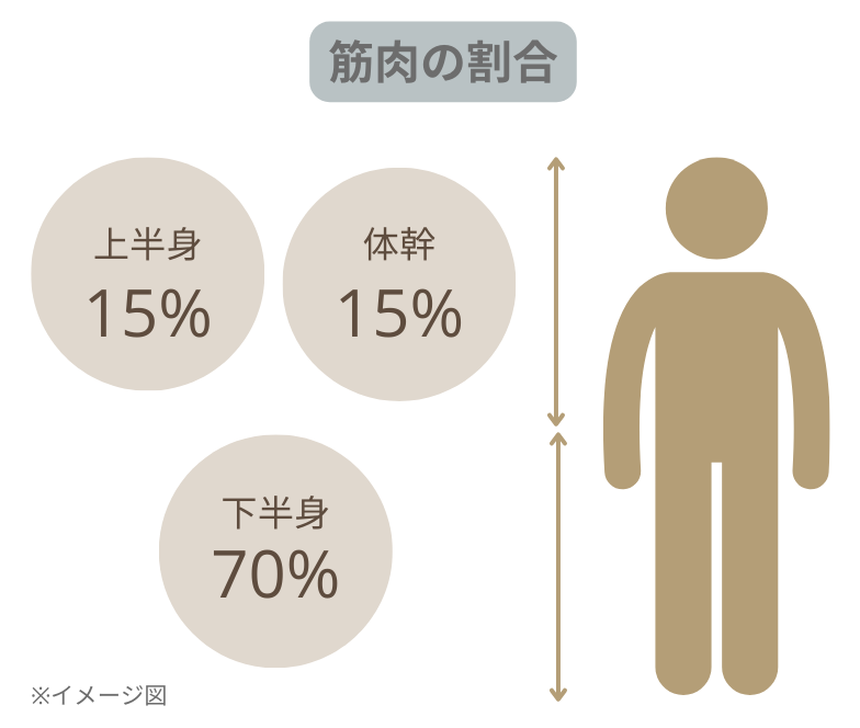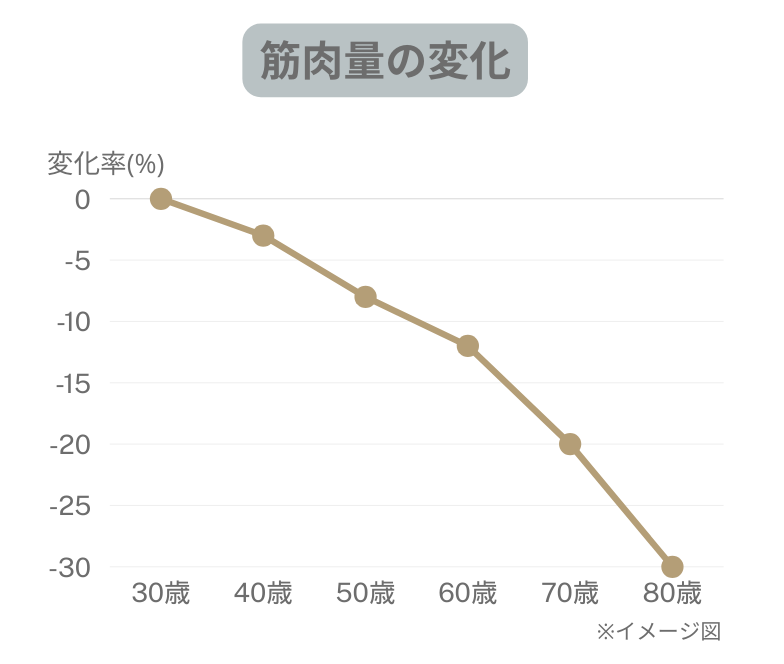 30歳をピークに筋肉量は減りはじめ、特に全体の7割が集中する下半身はその影響を受けやすいとされています。