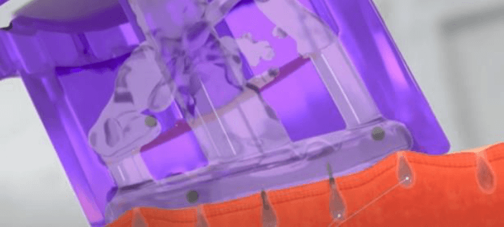 水流とグリコール酸を配合した溶剤で余分な角質を優しく取り除きます。